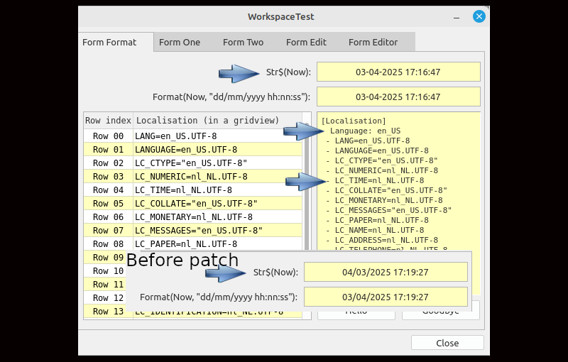 I run systems with language english, but metric, currency etc are all in dutch (see below). Debian shows my dates, metric etc. in the dutch format (as it should). Gambas on the other hand does not take into account these setting and thus for example dateboxes show US format.