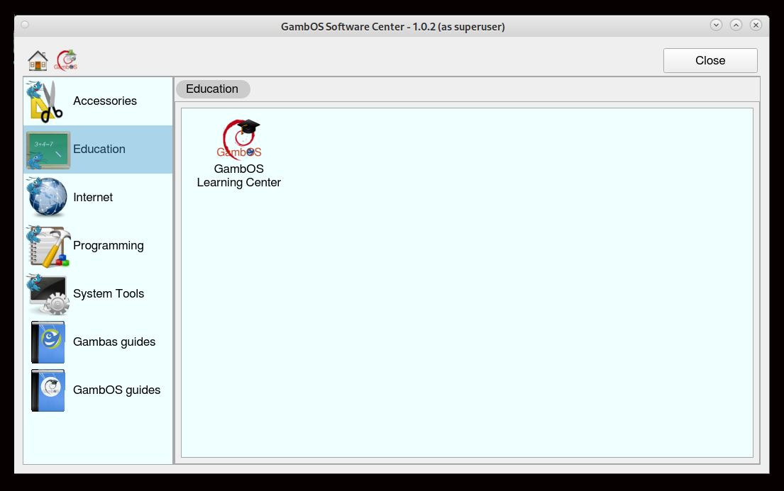 In GambOS Software Center, clicking on the Education category will reveal all educational GambOS applications available for installation.