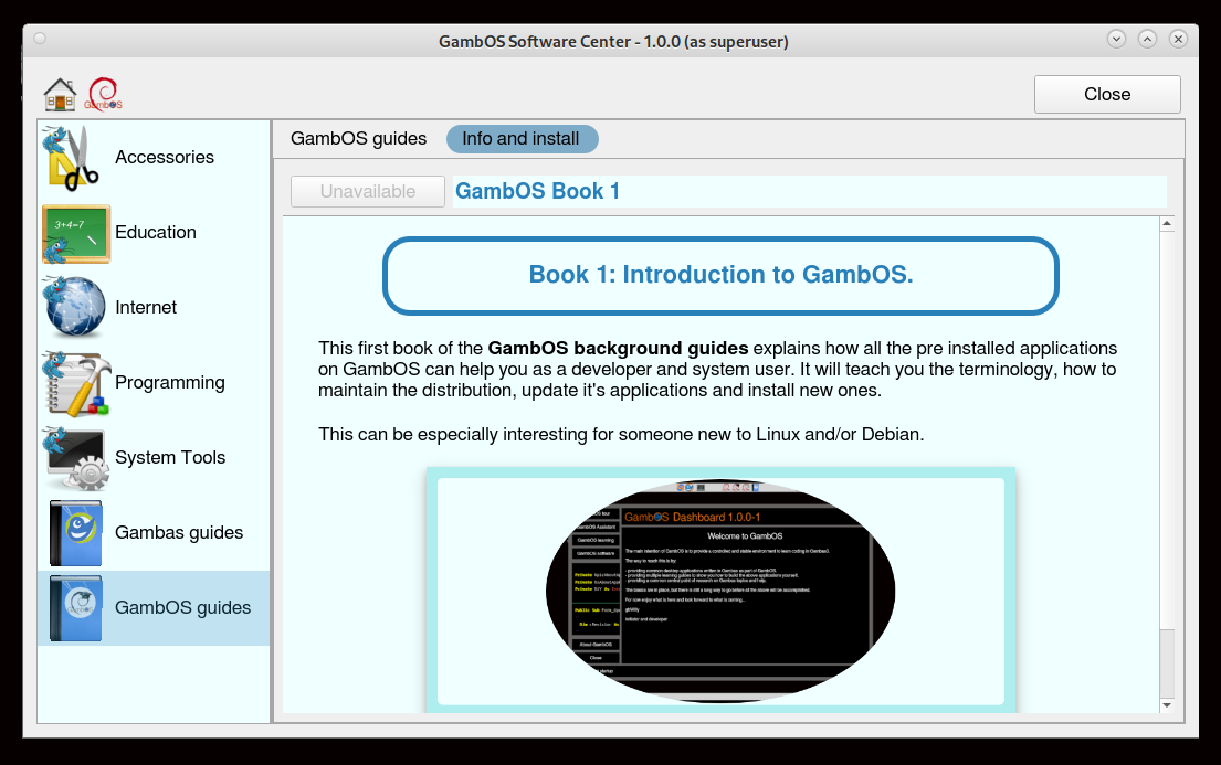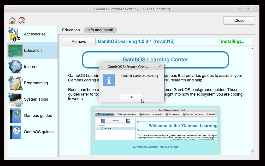 You should end up with the installed GambOS Learning Center. You will need this to view the installable guides.